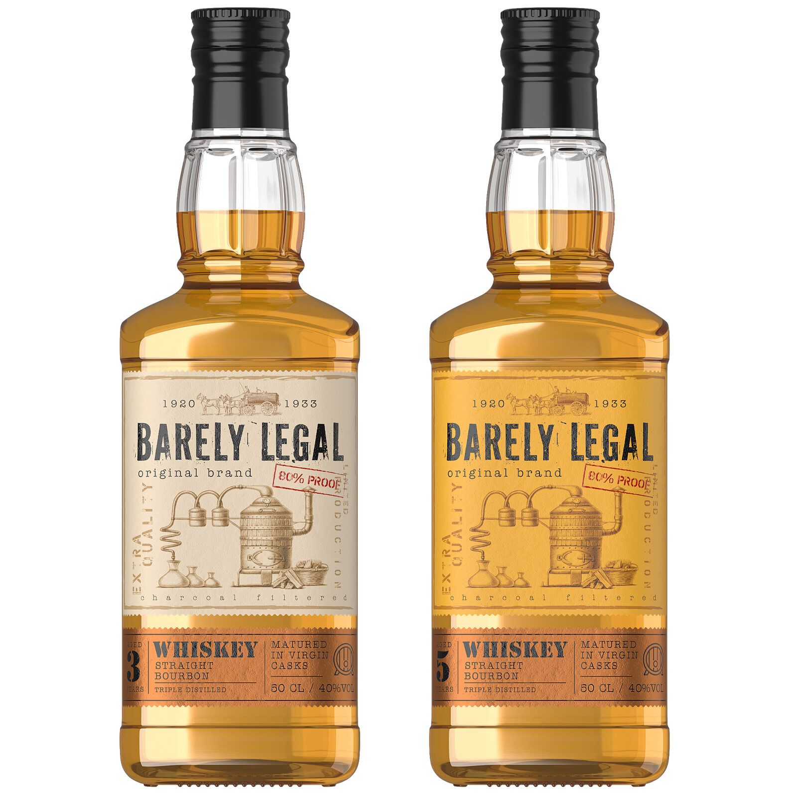 Студия БРЭНДИВАЙН разработала название и дизайн этикетки для виски BARELY LEGAL.